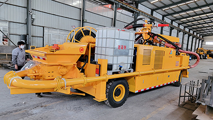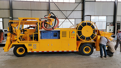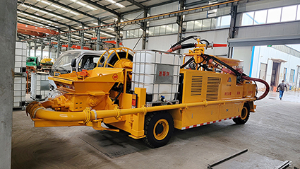 5.在正常喷射施工中,电动机驱动它驰骋在工地上。即便在电力中断的情况下,柴油机也能短暂地驱动泵送系统,让喷射机械手以较慢的速度进行各种操作,确保施工的连续性。